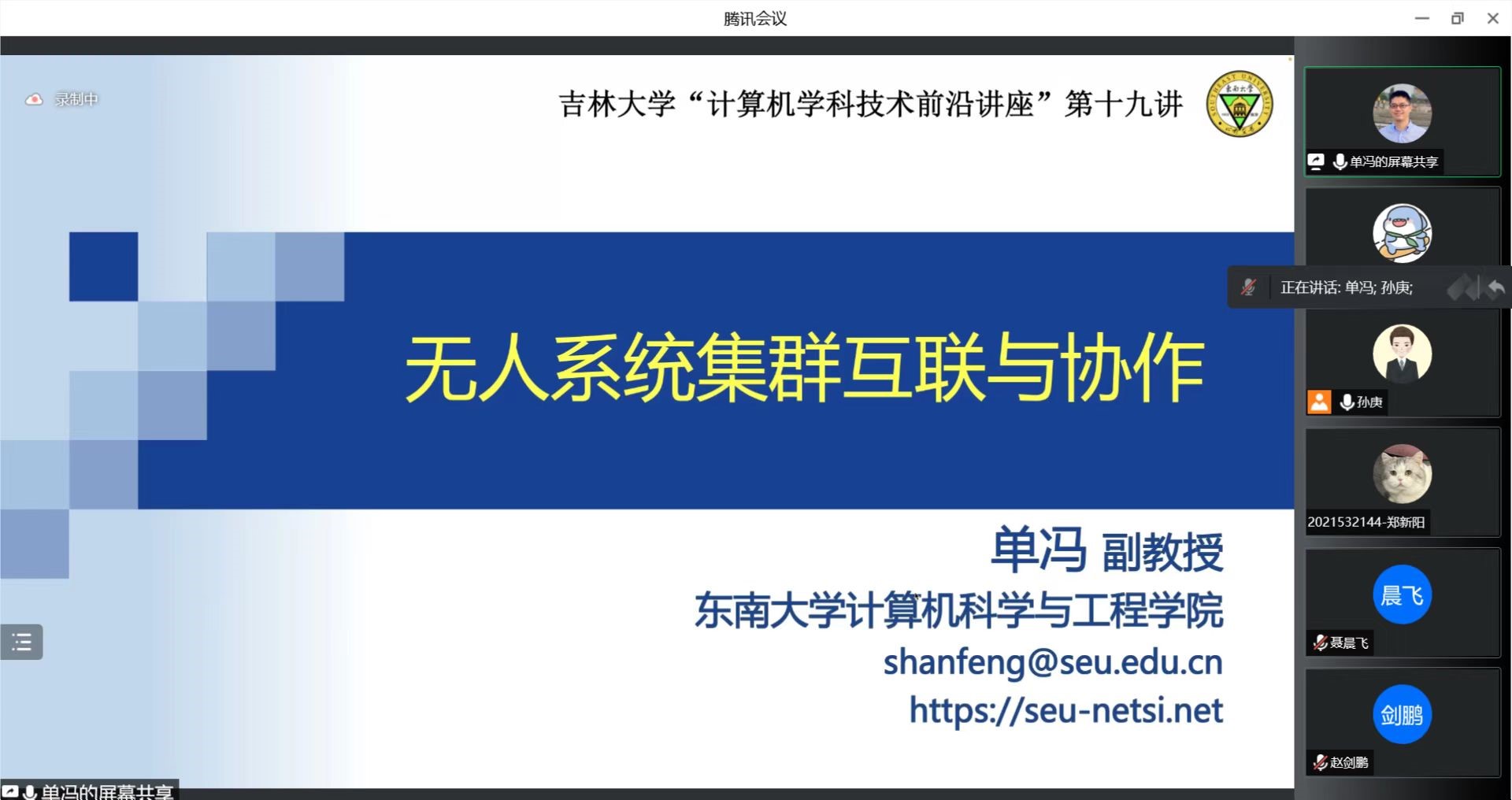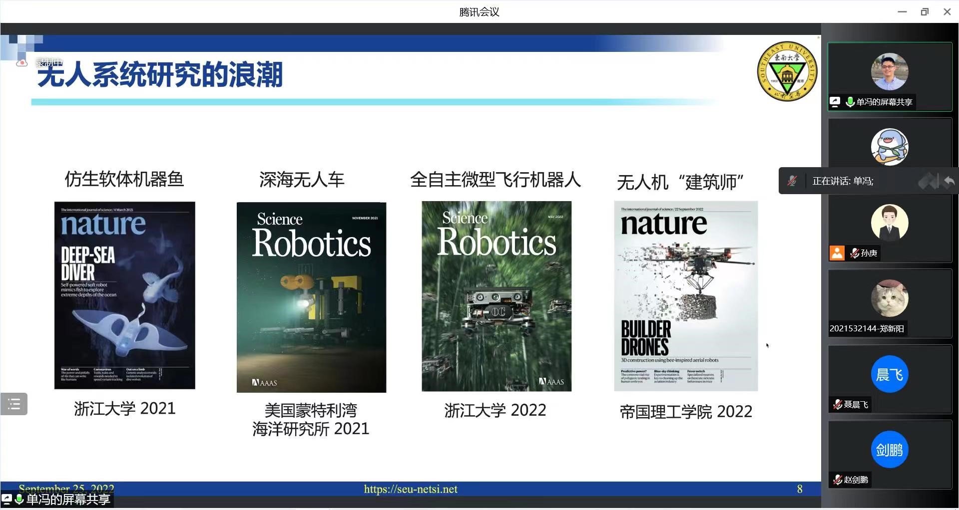 2022年9月25日,东南大学单冯副教授应英国威廉希尔足球官网邀请,利用腾讯会议作了题为“无人系统集群互联与协作”的学术讲座。